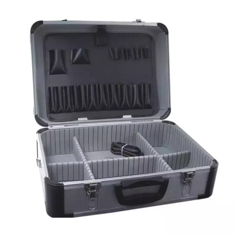 Materijal: aluminij; dimenzije: 455x330x170mm; otporan na oštećenja; brojni džepovi i pretinci; metalne kopče za zatvaranje