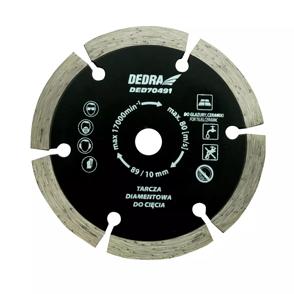 Segmentirani dijamantni disk za rezanje betona, cigle, klinkera, prirodnog i umjetnog kamena. Savršeno za bežične uređaje i uređaje na 230 V. Mali promjer oštrice (89 mm) omogućuje oštrici rad s vrlo visokim okretajima (do 17.000 okretaja u minuti), što osigurava veliku linearnu brzinu, što se pretvara u učinkovito rezanje.