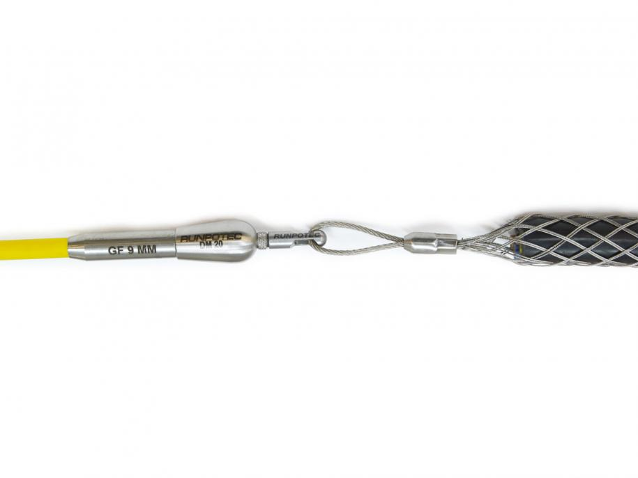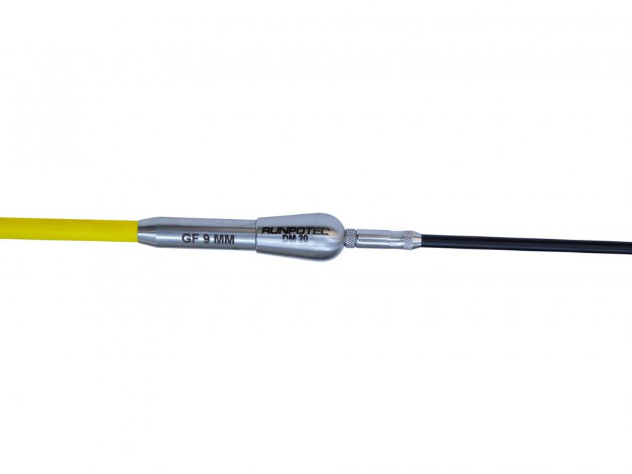 - Početna glava Ø 20 mm od nehrđajućeg čelika za sajle od fiberglasa Ø 7,5 mm, 9 mm, 11 mm, 15 mm – RTG Ø 12 mm navoj. Početna glava ima dodatni prijelazni navoj na RTG Ø 6 mm za prilagodbu raznih vodilica (RUNPOSTICKS), sondi za vođenje, ručke za povlačenje kabela (čarapa) itd.