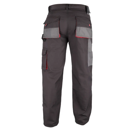 Radne hlače iz linije PERFECT LINE izrađene su od mješavine poliestera i pamuka. Takav materijal s težinom od 265 g / m² pruža visoku otpornost na abraziju i mehanička oštećenja. Dodatna pojačanja na koljenima. Ima funkcionalne džepove, uključujući i džep za pametni telefon. Trostruki šavovi koriste se za povećanje čvrstoće hlača. Savršeno za teške građevinske i renovacijske radove.