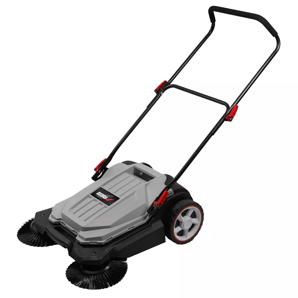 Ručni čistač izvrstan je alat za sve koji imaju velike prilaze ili pločnike u vrtu. Čistač se također može koristiti unutar prostorija kao što su garaže, skloništa ili skladišta. Zahvaljujući dvjema četkama, čistač istovremeno pokriva traku širine 650 mm, što osigurava brz i precizan rad koji se ne može postići običnom četkom ili metlom. Ručni čistač DEDRA DED8802 izvrsna je alternativa puhačima za lišće ili usisavačima. Čistač ima ručni mehanizam, tj. rotacija četki se stvara tijekom kretanja prema naprijed, što osigurava tihi rad. Meka završna obrada ručke osigurava visoku udobnost čak i tijekom dugotrajne uporabe. Podešavanje kuta upravljača omogućuje prilagođavanje položaja ručke proporcijama našeg tijela, što se odražava na bolju ergonomiju uređaja, veću udobnost i eliminaciju bolova u mišićima koji mogu nastati pri radu u prisilnom položaju. Sklopiva ručka čini spremanje ili transport čistača jednostavnim i štedi prostor. Čistač ima ugrađen spremnik od 18L koji osigurava dug rad bez potrebe za uklanjanjem plena. Ručni čistač DED8802 ima 4 kotača. Stražnji promjera 200 mm osiguravaju stabilnost i sigurnost u vožnji, a manji promjera 50 mm povećavaju manevarske sposobnosti. Čistač ima 3 četke – 2 bočne četke za pometanje otpada u spremnik i stražnju za uklanjanje zaobiđenih čestica. Radna širina od 650 mm omogućuje vam pometanje do 2600 m2 / h, što je izvrstan rezultat, pogotovo jer je pometenje praktički bez napora.