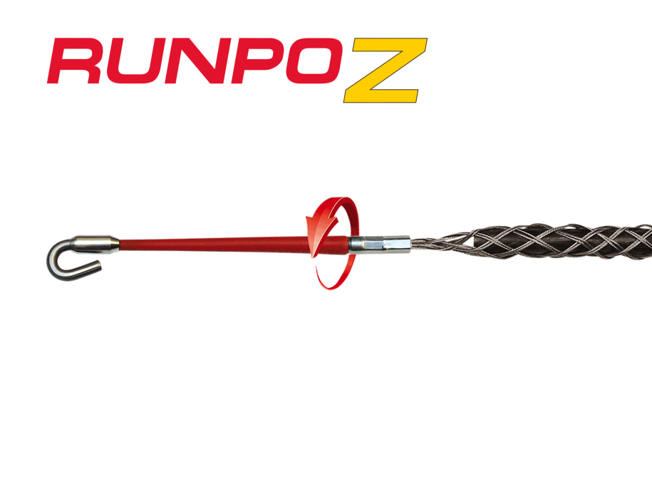 - Patentirana RUNPO Z – hvataljka za vuču (čarapa) s zakretnom ima integrirani zakretni element, koji kompenzira uvijanje kabela u cijevi i na taj način enormno štiti sustav umetanja, vučnu čahuru i kabel. Učvršćivač za brzo otpuštanje, ergonomski oblikovana kuka, omogućuje pričvršćivanje i uvlačenje jedinice u roku od nekoliko sekundi i više nema potrebe za dugotrajnim uvrtanjem i odvrtanjem. Ukupno opterećenje lomljenja od 200 kg ispitano je na kuki, spojnim pritiscima, okretaju i pletenici od nehrđajućeg čelika. Kuka, priključci i pletenica za vuču izrađeni su od visokokvalitetnog nehrđajućeg čelika, tako da nema hrđe i dug životni vijek RUNPO Z (hvataljka za vuču (čarapa). Umjesto dvije konvencionalne vučne čahure, samo RUNPO Z (20274)) je potrebno.