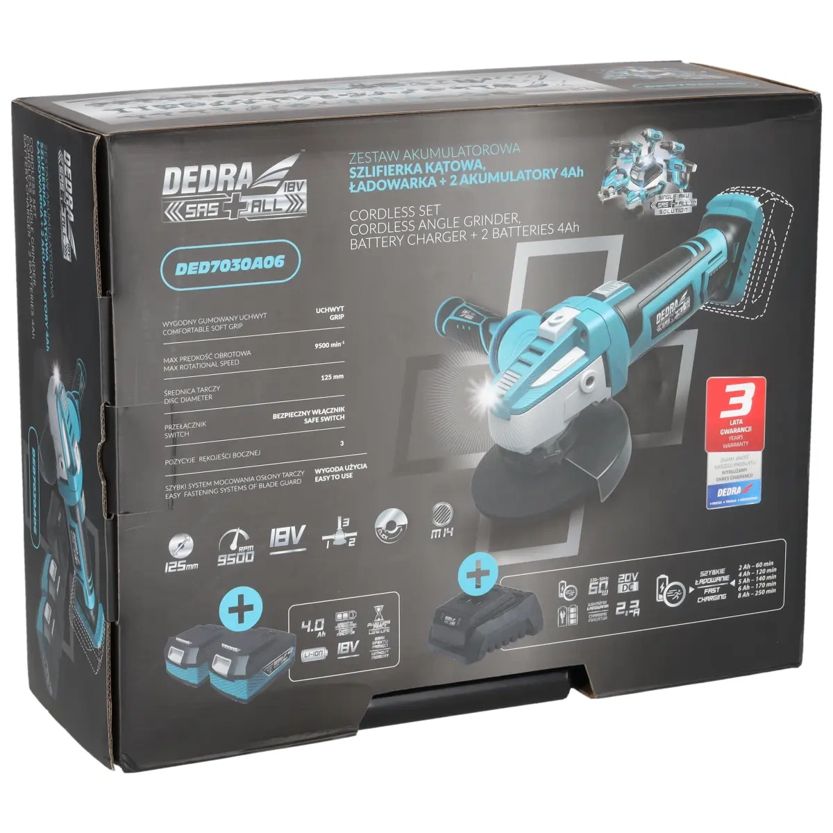 Značajke bežične kutne brusilice DEDRA SAS+ALL DED7050: