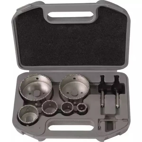 Krune sa presvlakom od volfram karbida, promjeri: 22, 28, 35, 44, 68, 73 mm, set uključuje dva pilot svrdla, kofer