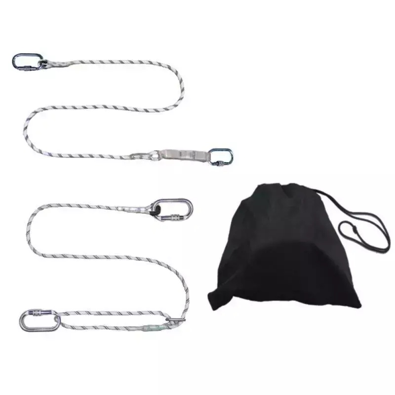 Dolazi s praktičnom torbom za pojas i dva sigurnosna konopa s ovalnim čeličnim karabinerima na navoj. Krajevi užeta osigurani.