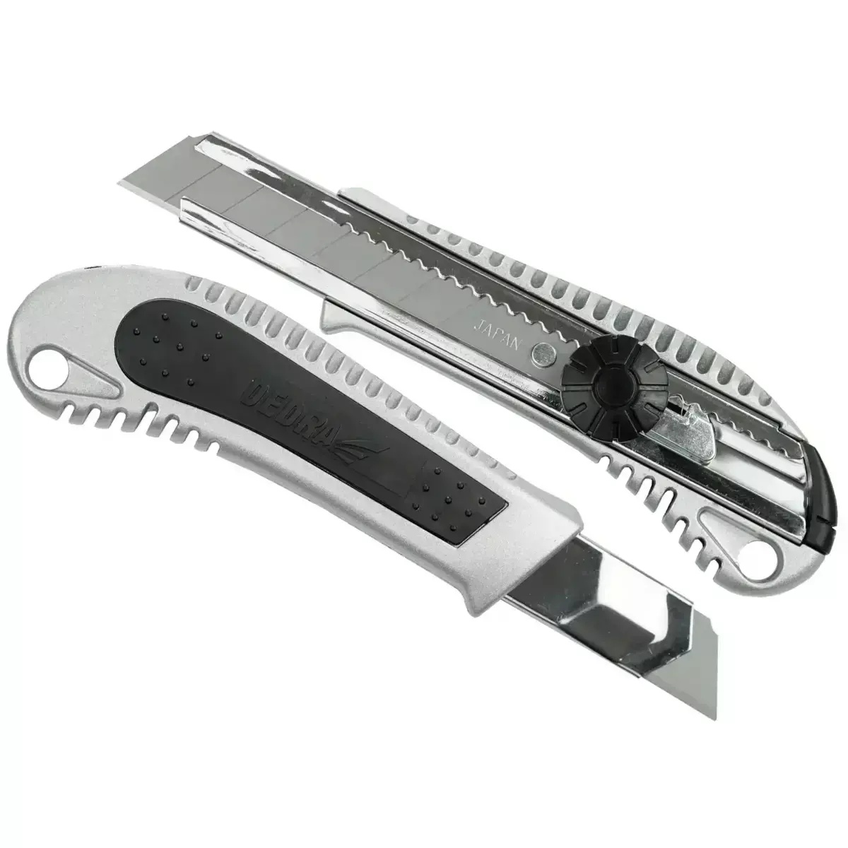 Širina oštrice: 18 mm; kućište: metal/guma; metalni vodič; gumb