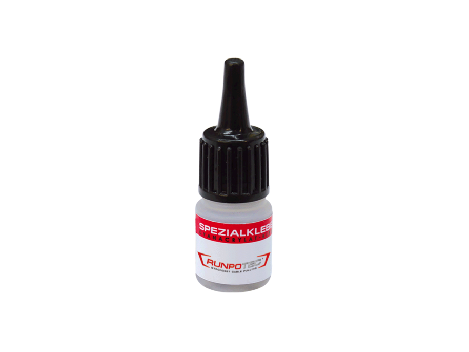 - 3 g specijalnog ljepila za popravak sajli od staklenih vlakana 3 mm, 4,5 mm i 6 mm. SPECIJALNO LJEPILO iz RUNPOTEC-a je vrlo ekonomično. Jedna kap je dovoljna za cca. 3 do 5 cm² ljepljive površine. Za upute pogledajte sigurnosno-tehnički list!