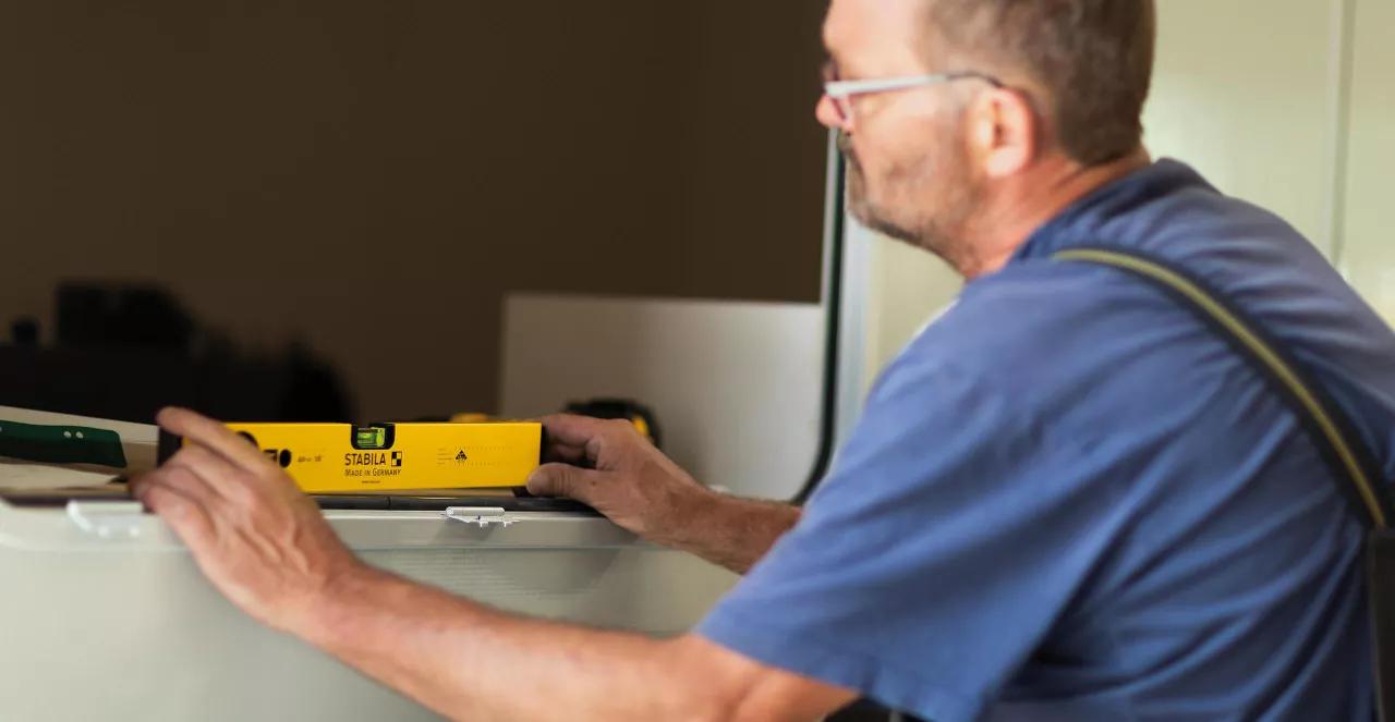 - Kao i kod svih STABILA libela, bočica je precizno poravnata s mjernom površinom, a zatim zaključana zajedno osiguravajući dugotrajnu točnost.