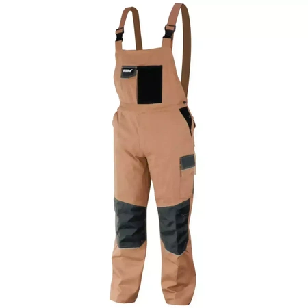 SLIM LINE zaštitne hlače izrađene su od mješavine pamuka i elastina. Ovaj materijal s težinom od 270 g / m² osigurava dobru cirkulaciju zraka i slobodu kretanja. Upotreba elastana utječe na čvrstoću i otpornost materijala na kidanje. Dodatna pojačanja na koljenima. Ima funkcionalne džepove, uključujući i džep za pametni telefon. Zahvaljujući podesivim naramenicama i gumi koja je ušivena u njih, hlače se lako postavljaju i udobne su tijekom korištenja.Trostruki šavovi korišteni su za povećanje čvrstoće hlača. Savršene su za tople dane kada radite na gradilištu ili u vrtu.